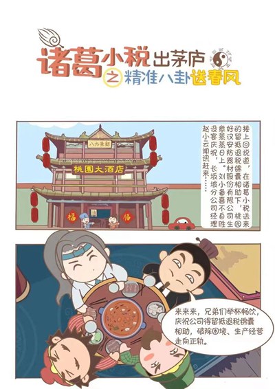 “聽說劉小備、黃小忠都得了這諸葛小稅的傾囊相助,咱們漁船何不能借這政策東風,揚帆遠航?”“憑我對周小瑜的了解,此人計謀多端,一直以來公司生意都不錯,為何系統中查詢到其主營業務收入如此少”…… 這是諸葛小稅系列漫畫中的場景。通過漫畫形式對最新稅收政策進行解說和普及,配上生動的卡通歷史人物形象,諸葛小稅系列漫畫一經推出,就迅速火出圈。
