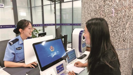 八月五日,在西安市政務服務中心,西安市公安局工作人員為市民辦理業務(資料照片)。
