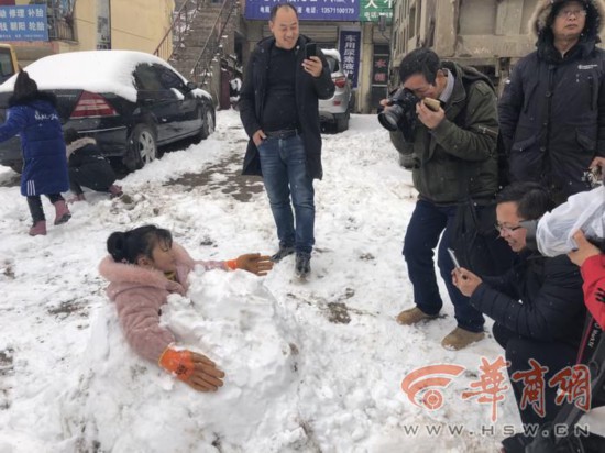 30岁的艾先生说:“刚才女儿对我说‘雪人都是假的’,我说‘那爸爸给你堆一个真雪人’。”