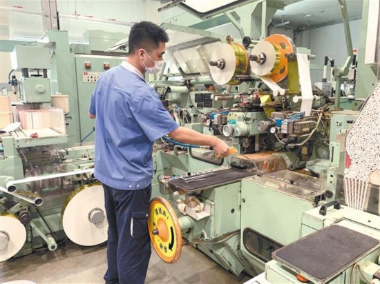 延安卷烟厂卷包车间工人正在忙着工作。