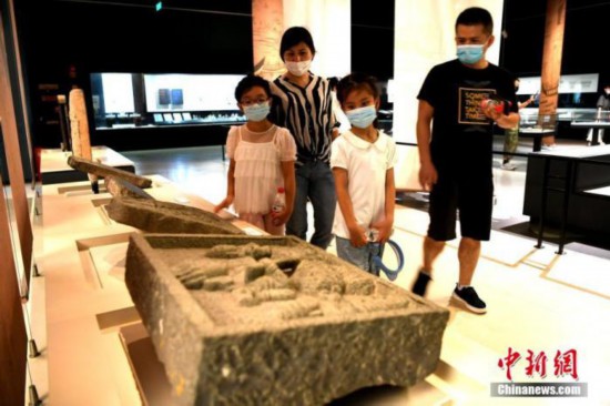 资料图:市民戴口罩观看文物展览。中新社记者 王东明 摄
